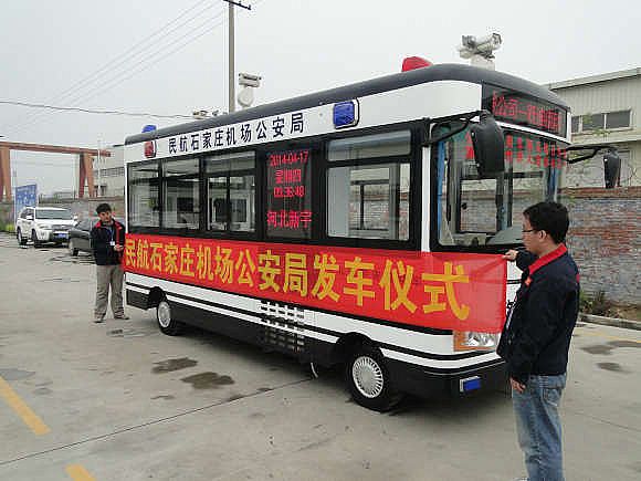 石家莊機場公安局移動警務室發(fā)車儀式 隨著假期的來臨,在車站、機場等場所的安保工作尤為重要和突出,此次發(fā)往河北民航石家莊公安局的移動警務室將極大的方便機場民警的執(zhí)勤工作同時也為石家莊機場的旅客提供安全保障