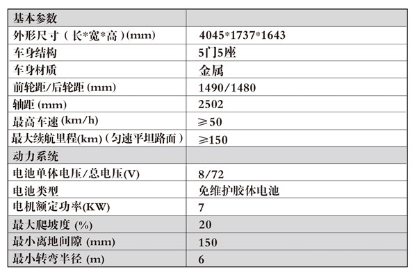 整體車(chē)身采用鋼板沖壓成型,車(chē)身經(jīng)陰極電泳處理。具有語(yǔ)音裝置,運(yùn)用蓄電池,是一種高效、節(jié)能、低噪音、零排放的綠色執(zhí)法用車(chē)。