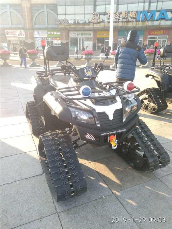 警用全地車型,該車簡單實用,越野性能好,具有多種用途,且不受道路條件的限制,使用履帶式結(jié)構(gòu),可以一年四季在冰雪路面、沙灘、沼澤、街面上行駛,適合執(zhí)行各種警務(wù)任務(wù),可以成功解決北方雪區(qū)冬季出行的難題,尤其適合雪地救援、森林巡防、管線巡查、邊防巡邏等方面的使用。