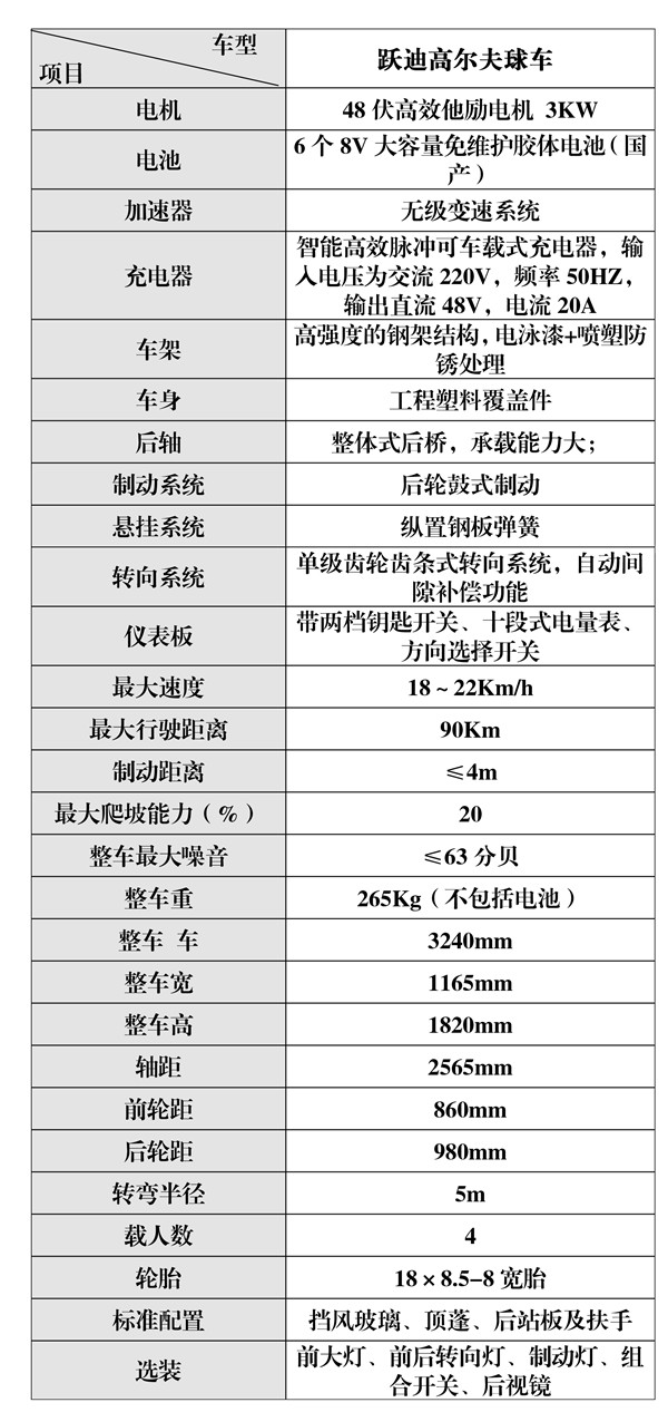 專門為高爾夫球場開發(fā)的場地用車。該車地盤低,上下方便,轉(zhuǎn)彎半徑小,操縱靈活,行駛平穩(wěn),整車載重性能優(yōu)越,行駛中平穩(wěn)顛簸受力小,駕乘舒適。