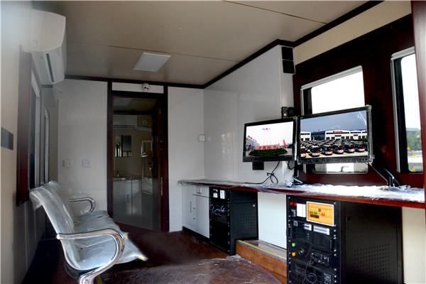 躍迪牽引式移動(dòng)警務(wù)室是根據(jù)公安、特警系統(tǒng)特點(diǎn)和移動(dòng)辦公指揮的需求,開發(fā)設(shè)計(jì)的能滿足一定人員工作并實(shí)現(xiàn)遠(yuǎn)程監(jiān)控、指揮調(diào)度功能的新型警務(wù)設(shè)備。配備警務(wù)辦公系統(tǒng)、警務(wù)通信系統(tǒng)、監(jiān)控系統(tǒng)、圖傳系統(tǒng)、供電系統(tǒng)、照明系統(tǒng)及簡(jiǎn)易生活設(shè)備,具有現(xiàn)場(chǎng)辦公指揮、應(yīng)急通信、圖像4G傳輸、強(qiáng)聲廣播、惡劣環(huán)境執(zhí)勤等功能,能滿足移動(dòng)辦公、警務(wù)前移等需要。適用于大型會(huì)議、活動(dòng)等現(xiàn)場(chǎng)警務(wù)辦公,可實(shí)現(xiàn)了對(duì)治安復(fù)雜場(chǎng)所、案件高發(fā)區(qū)域、大型活動(dòng)現(xiàn)場(chǎng)、旅游景點(diǎn)等及治安盲區(qū)的動(dòng)態(tài)管控。