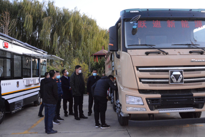 北奔重汽一行人參觀躍迪新能源渣土車